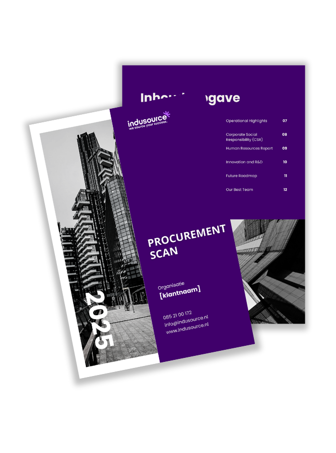 De procurement scan geeft een helder beeld van jouw organisatie, evalueert grondig de huidige inkoopprocessen en brengt verbeterpunten nauwkeurig in kaart. Samen vertalen we jouw inzichten en informatie naar een dynamisch rapport dat een volledig overzicht biedt, met duidelijke conclusies en gerichte aanbevelingen.